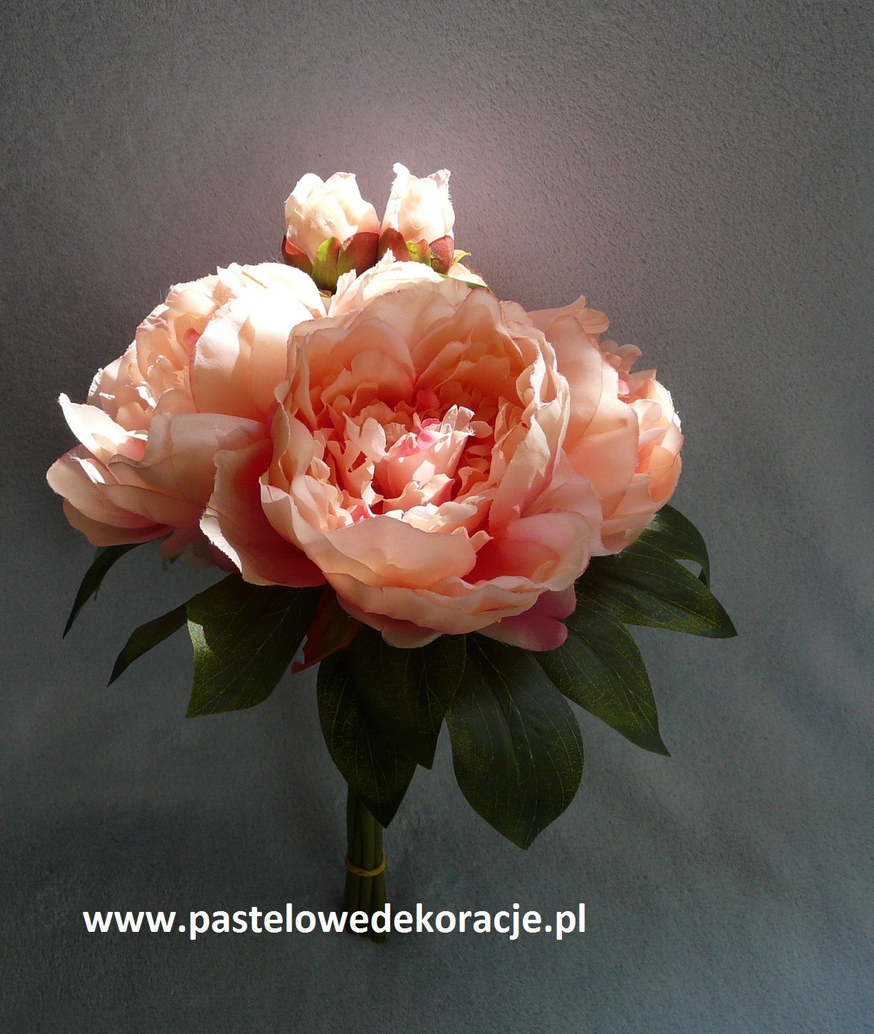 Bukiet z 8 peonii z ekskluzywnych sztucznych kwiatów, wyglądających jak żywe. Wymiary 25 x 34 cm.
